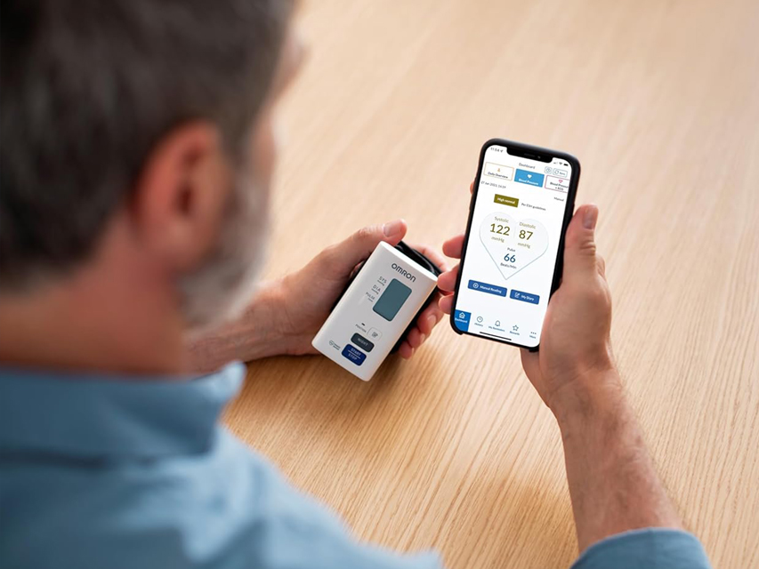 Omrom, OMRON EVOLV - EVOLV Intelli Wrap manžetes tehnoloģija nodrošina 360° precizitāti jebkurā pozīcijā ap augšdelmu. EVOLV var sinhronizēt jūsu mērījumus ar viedtālruni, lai izsekotu rezultātus, pārraudzītu progresu un iegūtu dziļāku izpratni par jūsu veselību. Skatiet viedtālruņu saderības sarakstu vietnē omronconnect.com/emea/en_gb.