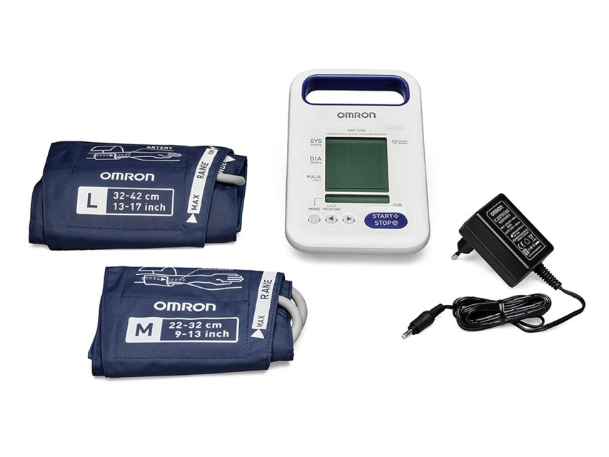 Omrom, OMRON HBP-1320-E - profesionālais - OMRON AUTOMĀTISKAIS AUGŠDELMA asinsspiediena mērītājs HBP-1320-E.HBP-1320-E asinsspiediena mērītājs ir kompakta, viegla profesionāla medicīnas ierīce, paredzēta asinsspiediena mērīšanai, izmantojot oscilometrisko metodi.Kliniski pierādīts, ka nodrošina ātrus un uzticamus rezultātus.- Divi režīmi: pilnībā automātiska oscilometriska mērīšana vai manuālais auskultācijas režīms.- Kustības apturēšanas funkcija: ja tiek konstatēta ķermeņa kustība, ierīce pārtrauc gaisa atlaišanu uz 5 sekundēm.- Indikators nepravilīgam pulsam.- Liels, viegli salasāms apgaismots displejs ar pēdējā mērījuma funkciju.- Integrēts rokturis ērtai transportēšanai.Komplektā: GS manžete L (32-42 cm), GS manžete M (22-32 cm), AC adapteris, bateriju komplekts un daudzvalodu lietošanas rokasgrāmata GB, FR, IT, ES, DE, NL, TR, RU, Arabic.Pieaugušajiem un pediatriskajiem pacientiem no 3 gadiem.