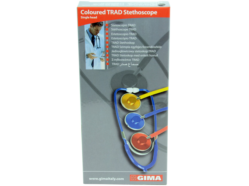 Trad, Krāsains TRAD STETOSKOPS - dzeltens - KRĀSOTIE TRAD STETOSKOPI - BEZ LATEKSA- TRAD viengalvaini - dzelteniKrāsaini alumīnija stetoskopi, viegli un uzticami.Krūškurvja diafragmas Ø 43,5 mm, zvaniņa Ø 30 mm ārējie izmēri.Misiņa binaurālie.Caurules: garums 62 cm, int. Ø 4 mm, ārējais Ø 8 mm.Piegādāts kartona kastē.Rokasgrāmata un iepakojums 11 valodās: GB, FR, IT, ES, DE, PT, GR, PL, HU, SE, arābu valodā.
