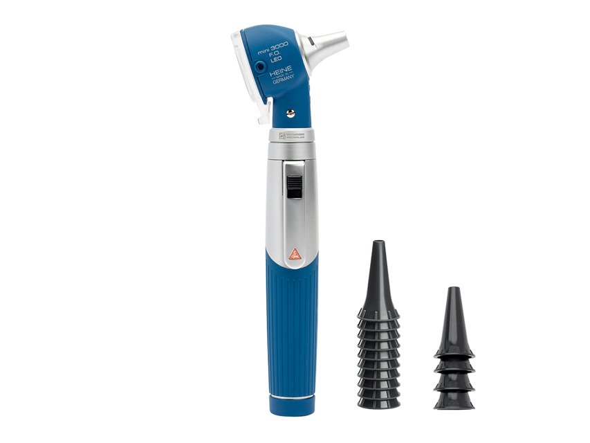 Dermatoskopi Heine, HEINE MINI 3000 F.O. LED otoskops ar daudzreizlietojamiem ausu uzgaļiem.Zils.D-008.70.120