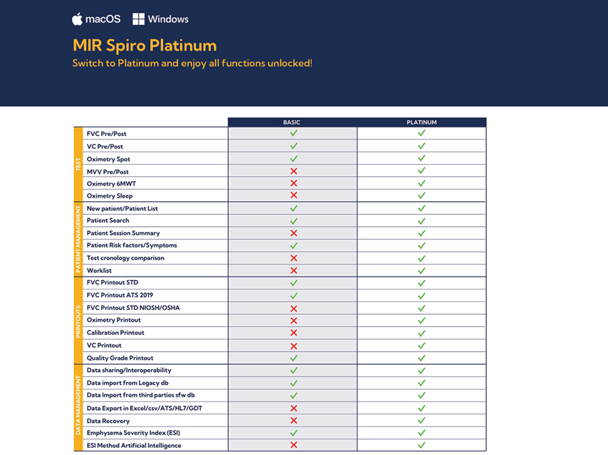 Spirometri, Jauns minispir - pc spirometrs - Mērījumi plūsma/apjoms apjoma-laika līkne reālā laikā, salīdzinājumi PRE/POST. Paplašināta spirometrijas testa interpretācija. Animācijas stimulēšanas bērniem. Plaušu vecuma noteikšana. Bronhiālais provokatīvais tests, ieskaitot jauno Mannitol protokolu ar atsauksmes līkni FEV1. Temperatūras devējs pārveidojumiem BTPS.