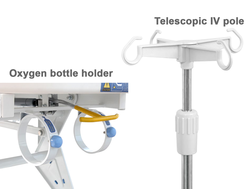 592_607 Pacientu ratiņi ar sānu sliedēm un skābekļa balona turētāju pasūtīt 1549.28