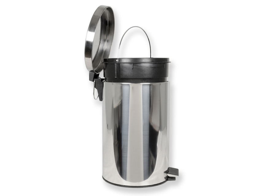 Atkritumu tvertne, Atkritumu tvertne - Izgatavota no nerūsējošā tērauda. Neslīdošs gumijas pedālis. Divi sānu rokturi, lai novērstu pirkstu saspiešanu. Cinkots iekšējais spainis ar rokturi.