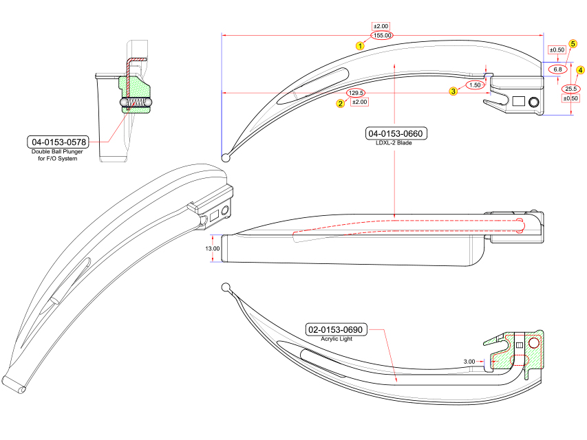 GIMA laringoskopi, Lietojams tikai vienam pacientam F.O. BLADE MILLER N 0 - jaundzimušais - Vienam pacientam paredzētas F.O. laringoskopa lāpstiņas. MILLER N° 0 lāpstiņa. Jaundzimušajiem. Saderīga ar ISO 7376 Green System. Zems profils palīdz samazināt zobu traumas, uzlabo piekļuvi ierobežotas mutes atvēršanas gadījumā un balsenes vizualizāciju. Augstas triecienizturības plastmasas bloks kopā ar metāla spatulu nodrošina lielu izturību visai lāpstiņai, salīdzināmu ar pilnībā no metāla izgatavotām atkārtoti lietojamām lāpstiņām. Plānāks dizains vieglākai manevrēšanai un intubācijai. Gaismas vadītājs izgatavots no materiāla ar izcilu gaismas caurlaidību: 4,000 lux ar 2.5 V Xenon lampu un 10,000 lux ar LED lampu. Nepieciešams F.O. rokturis. Instrukcijas: GB, FR, IT, ES, PT, DE, RO, GR, Arabic.