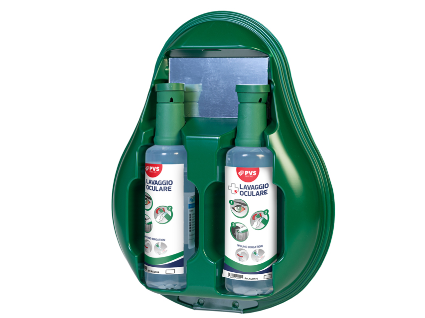 Acu skalošanas komplekti, Pilieni acu skalošanas postenim - Termiski veidots sienas komplekts ar visiem nepieciešamajiem priekšmetiem efektīvai pirmajai ārkārtas acu mazgāšanai: