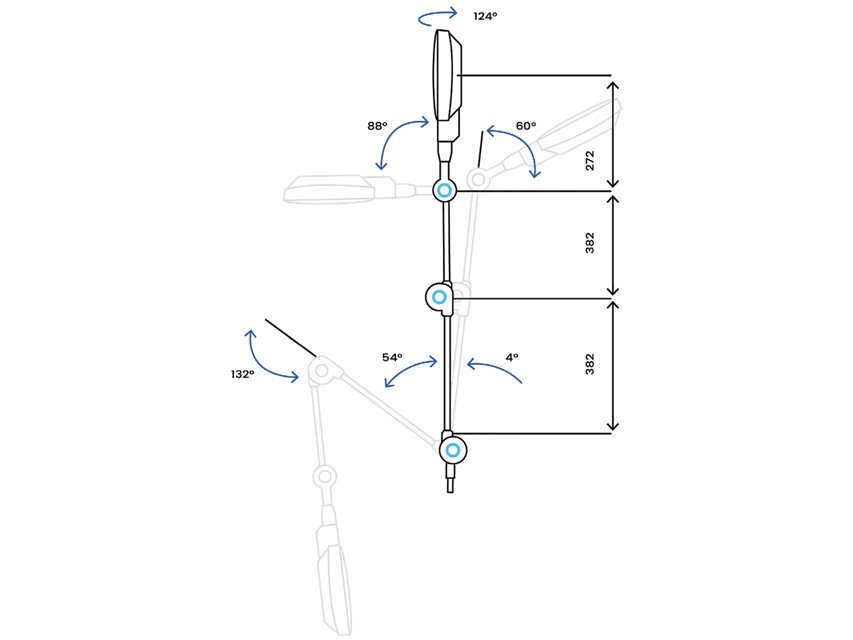 Elastīga roka ļauj lampu viegli virzīt jebkurā virzienā.