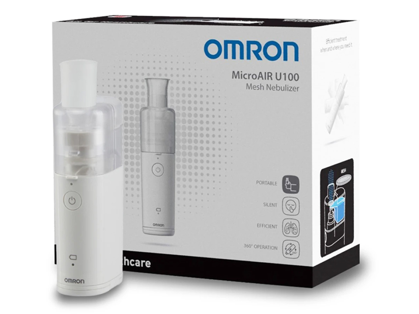 Nebulaizeris, OMRON MICROAIR U100 membrānas nebulizators.NE-U100-E - OMRON MICROAIR U100 TĪKLA NEBULIZATORS - NE-U100-E. MicroAIR U100 ir mazs, pārnēsājams tīkla nebulizators, kas palīdz efektīvi ārstēt daudzus apakšējo elpceļu stāvokļus, no viegla klepus līdz astmai. Pārnēsājams, kabatā ievietojams un darbināms ar baterijām, to var izmantot jebkurā laikā un vietā. Klusa darbība ļauj lietot diskrēti. 360° darbība: unikālais dizains ļauj izmantot ierīci jebkurā pozīcijā, pat guļot gultā, padarot to ērtāku bērniem. Vienkārša vienas pogas darbība. Unikālā tīkla tehnoloģija padara to efektīvāku un ērtāku lietošanā nekā tradicionālie nebulizatori. Komplektā iekļauts ierīces pārsegs, medikamentu konteiners, tīkla vāciņš, maskas adapters, mutes uzgalis, pieaugušo maska, bērnu maska, mīksts futlāris, 2xAA baterijas, ātrā rokasgrāmata un daudzvalodu rokasgrāmata GB, FR, IT, ES, DE, NL, TR, RU, Arabic.