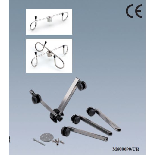 Infūzijas statīvi, Infusion STAND - Infūzijas statīvs. Izgatavots no hromēta tērauda. Četri hromēta tērauda āķi. Piecu spieķu nerūsējošā tērauda pamatne Ø 60 cm ar ritentiņiem Ø 50 mm, divi ar bremzēm. Ražots Itālijā.