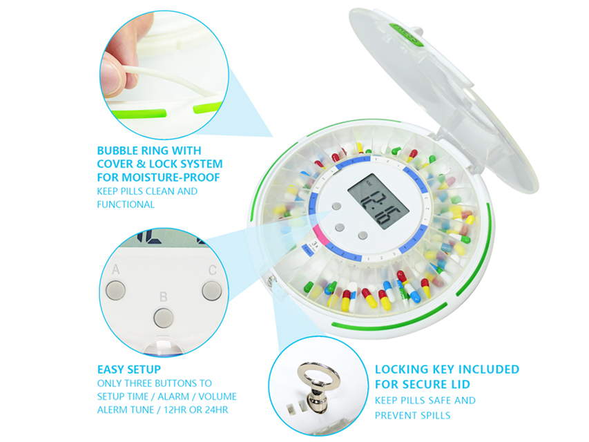 Tabletēm, Taimeris tablešu kārbai - Tablešu kārba ar taimeri nēsāšanai kabatā.